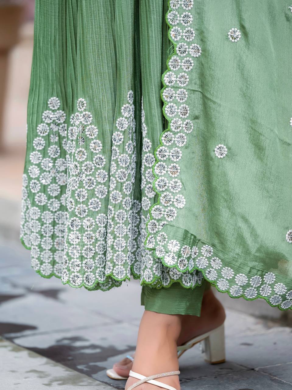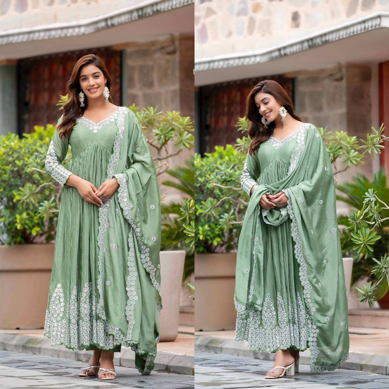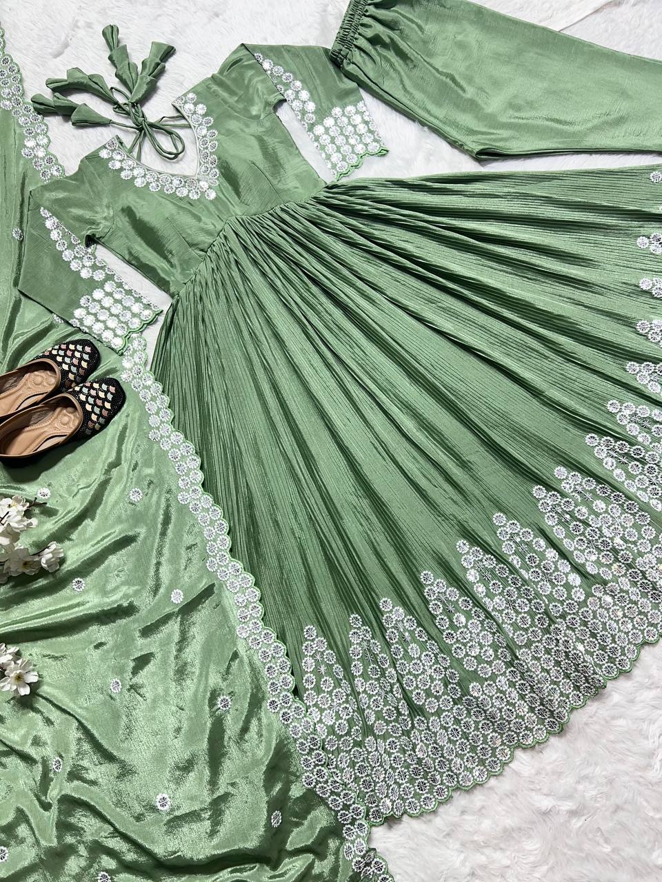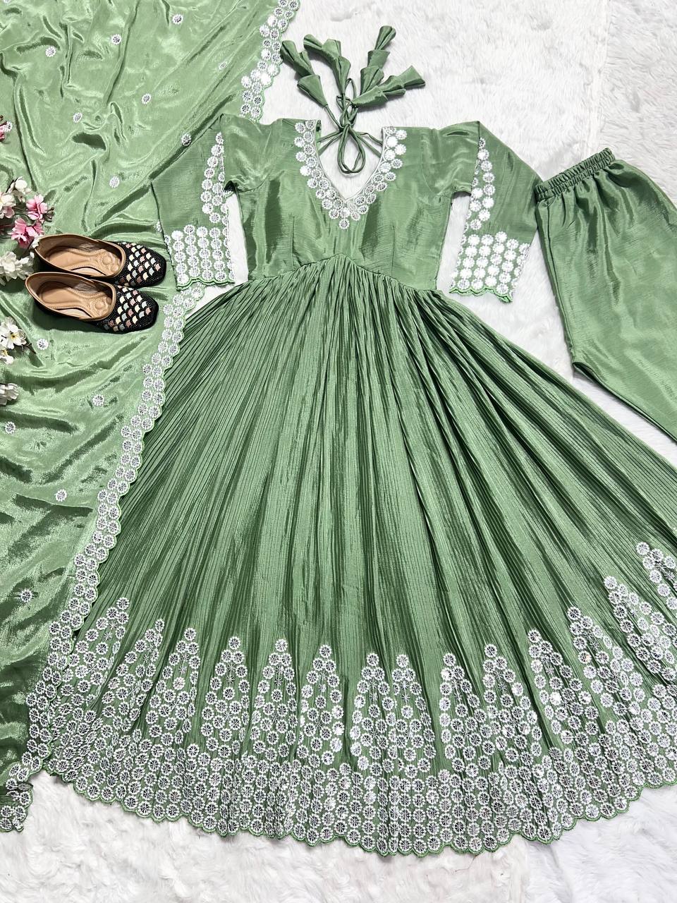 Anarkali Fabric: Pure Chinon Silk & Crush with 5mm Sequence Embroidery Work and Fancy Full Sleeves