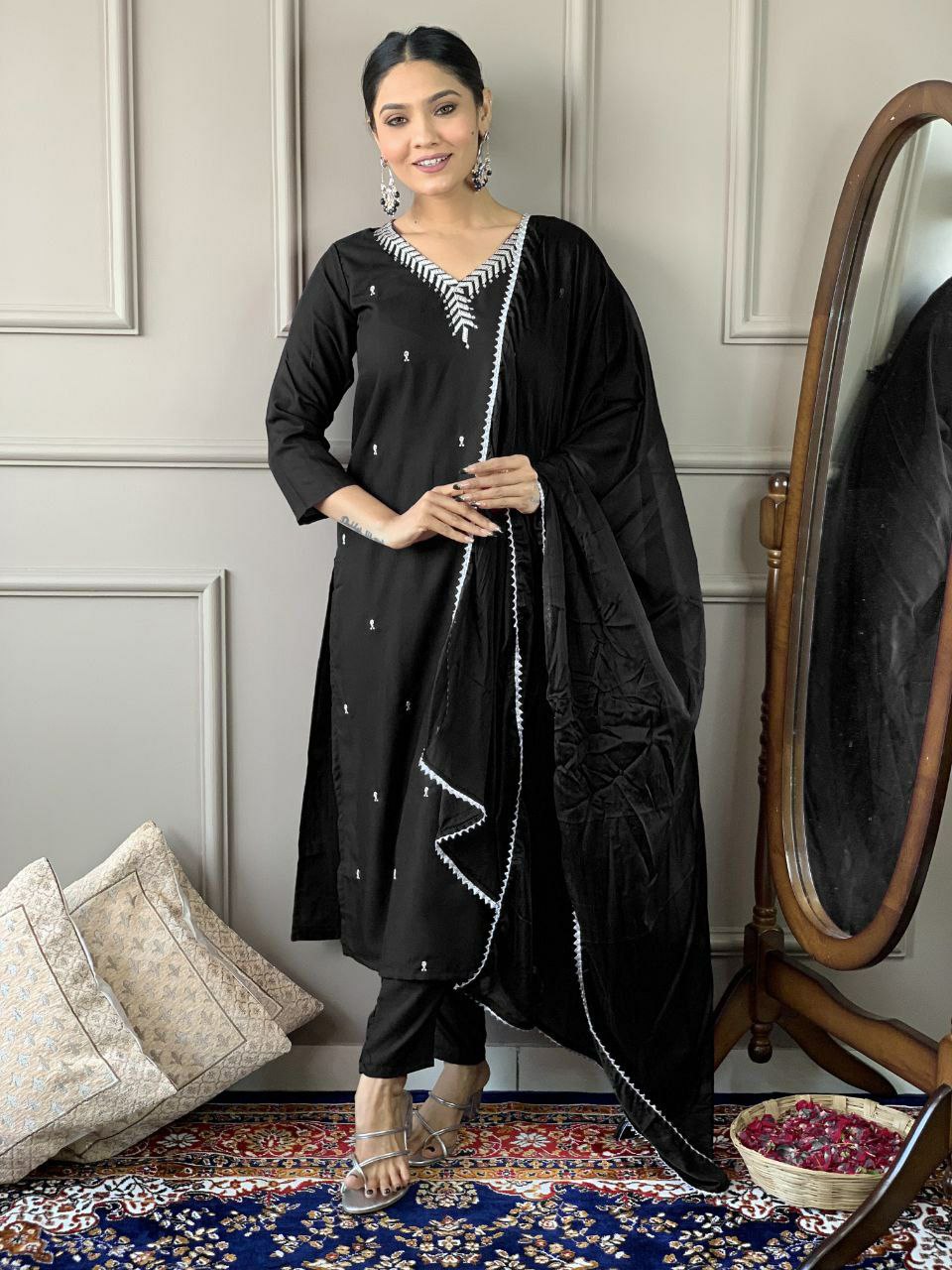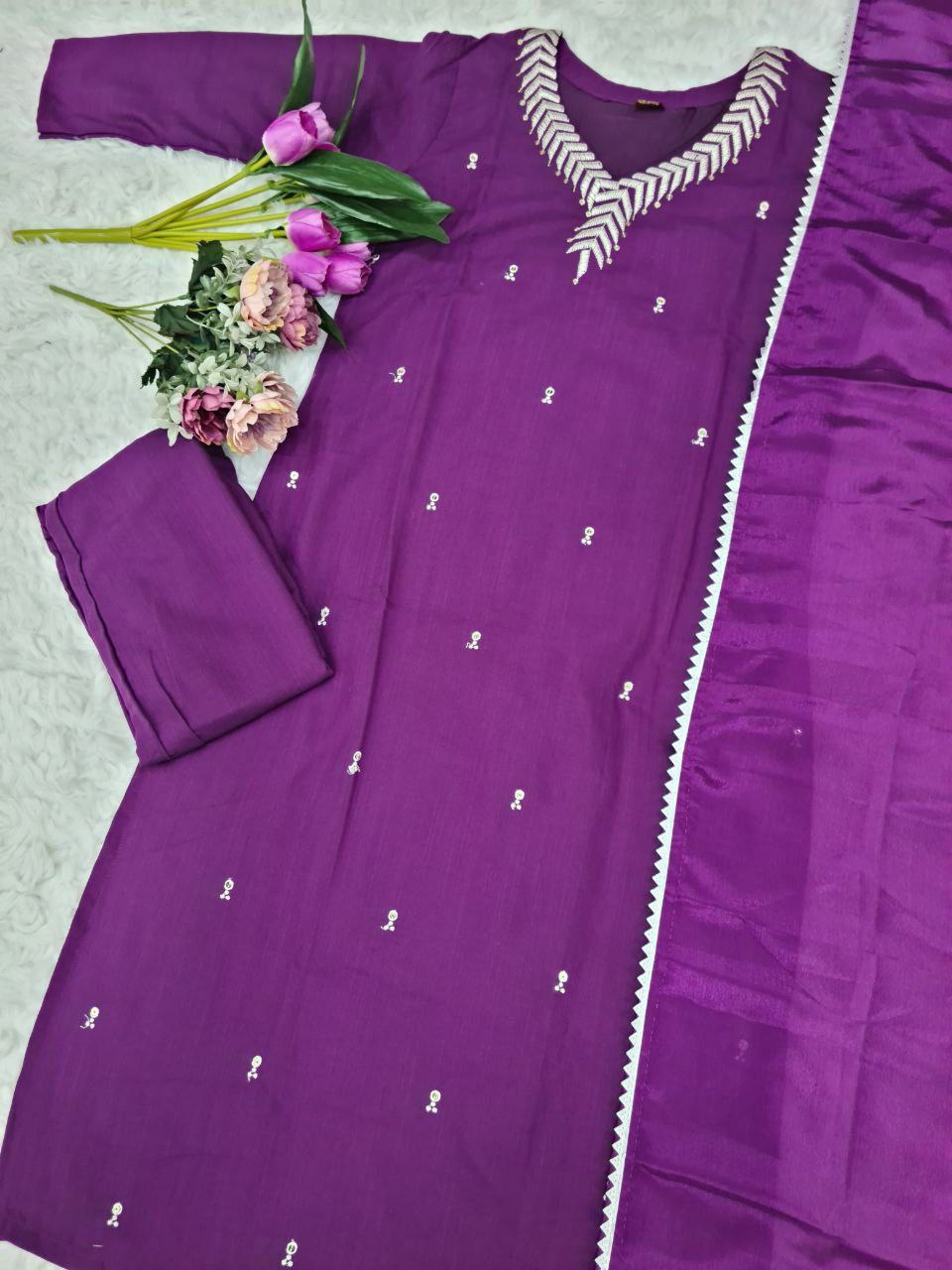 TOP FABRIC : PURE REYON SLUB WITH SEQUENCE EMBROIDERY WORK