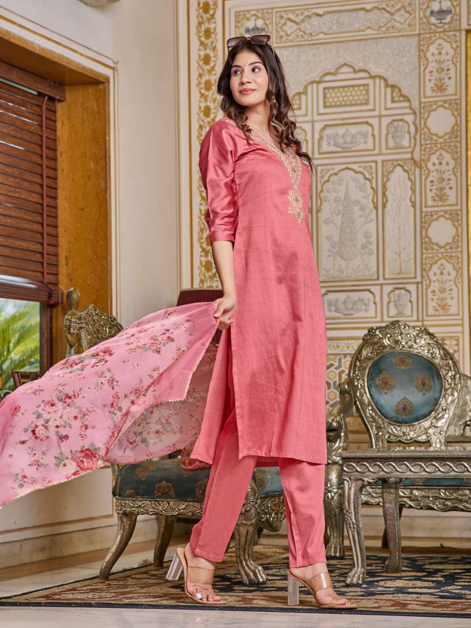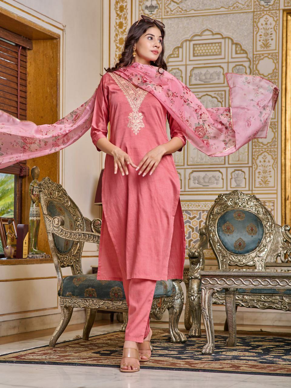 PURE VISCOSE CHANDERI WITH SEQUENCE CODING EMBROIDERY WORK