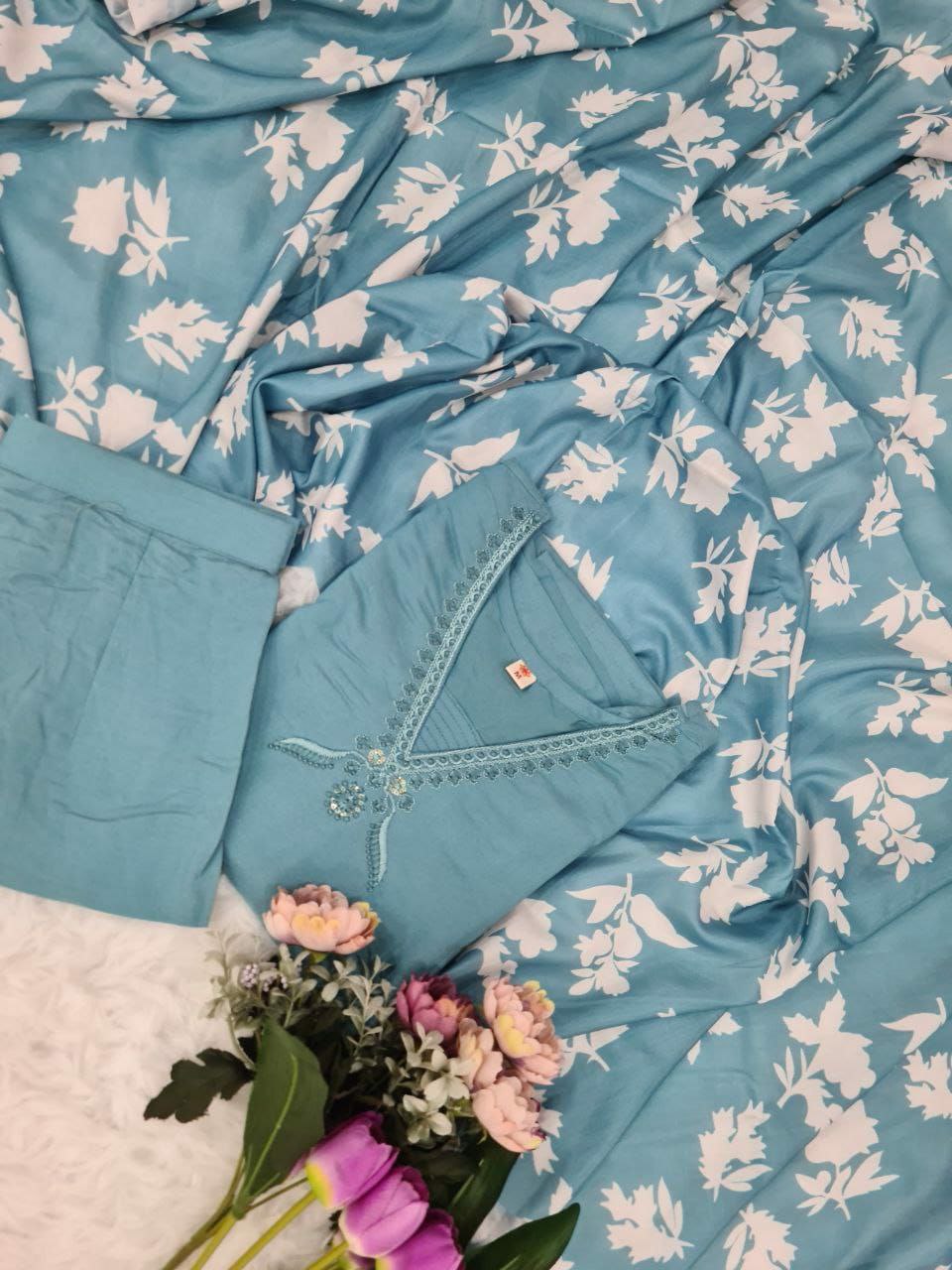TOP FABRIC : PURE VISCOSE CHANDERI WITH SEQUENCE EMBROIDERY WORK