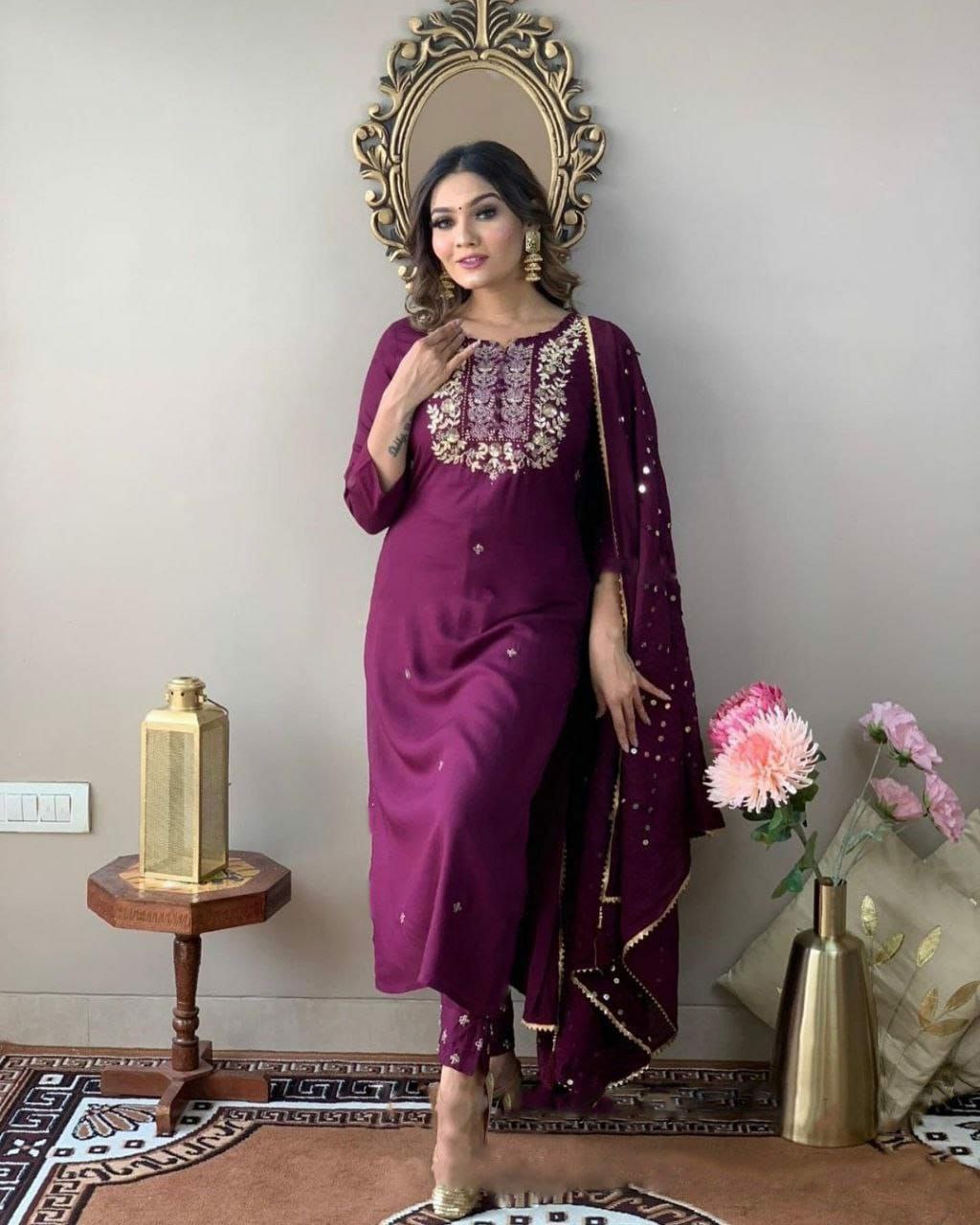 BOTTOM FABRIC : RAYON SLUB WITH EMBROIDERY WORK