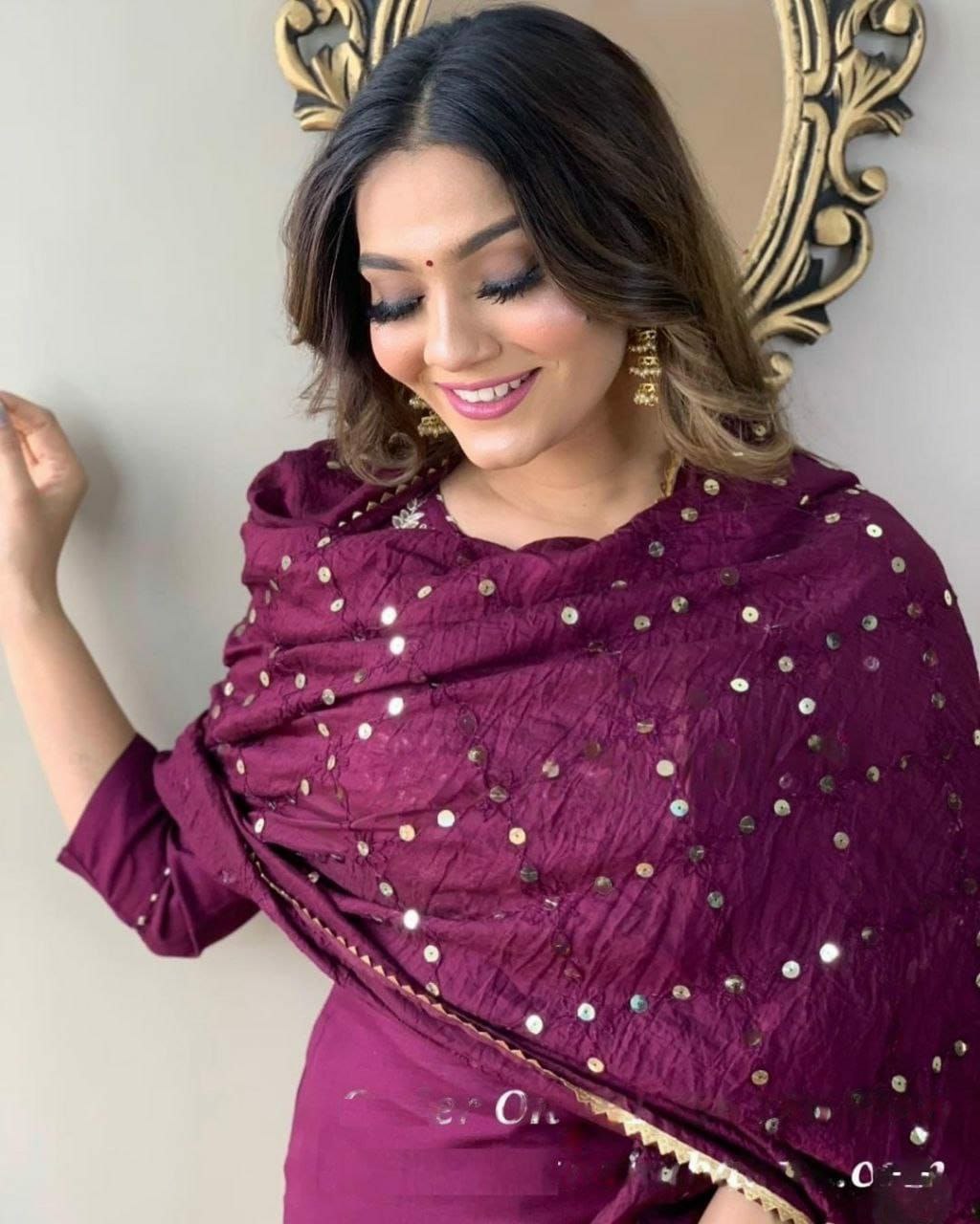 RAYON SLUB WITH SEQUENCE COADING EMBROIDERY WORK DRESS