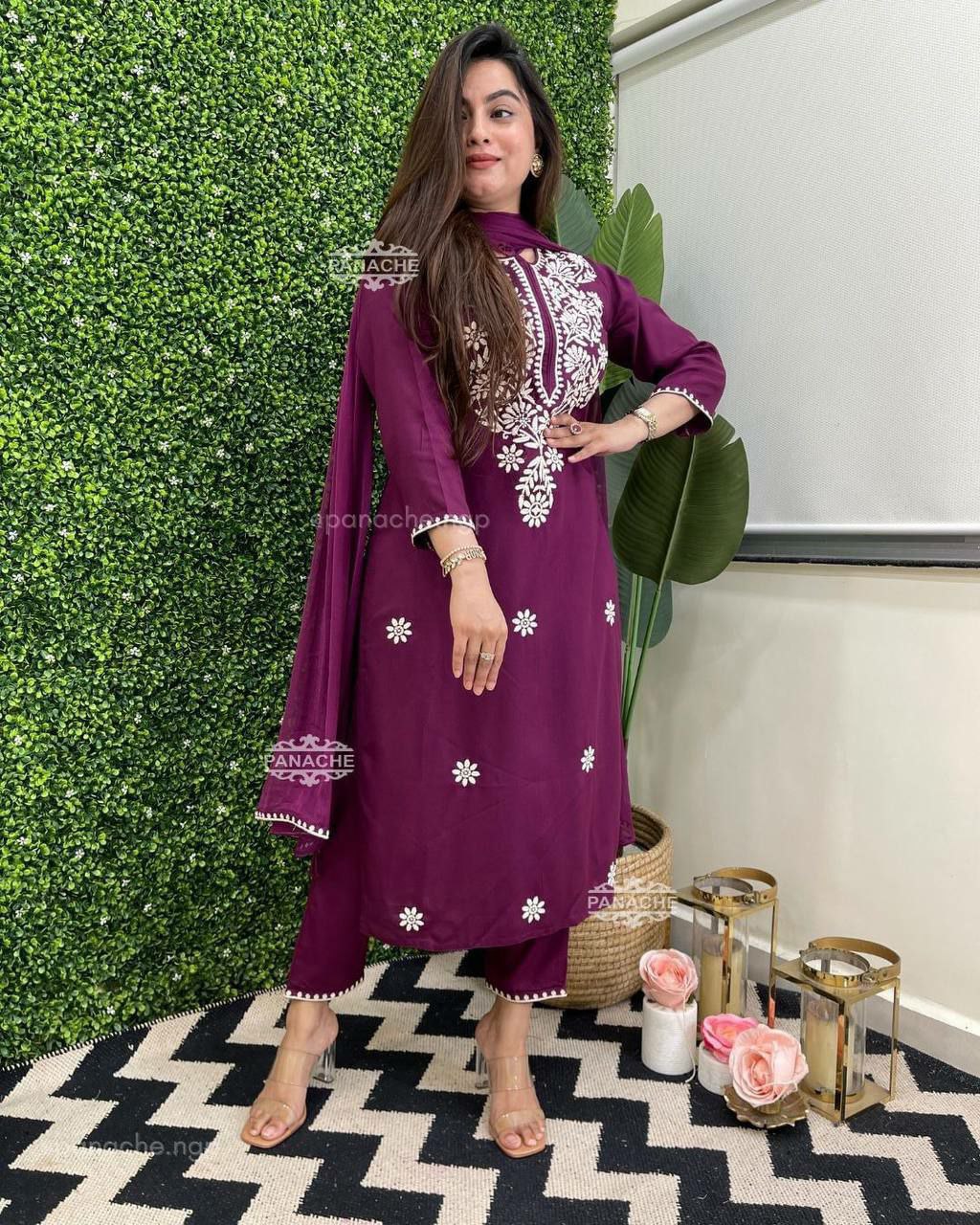 Reyon plazo with Nazneen dupatta