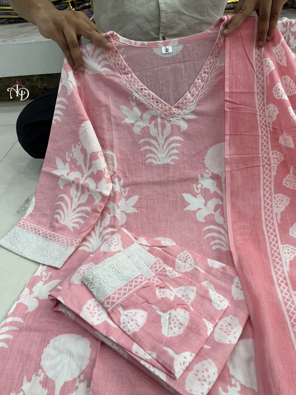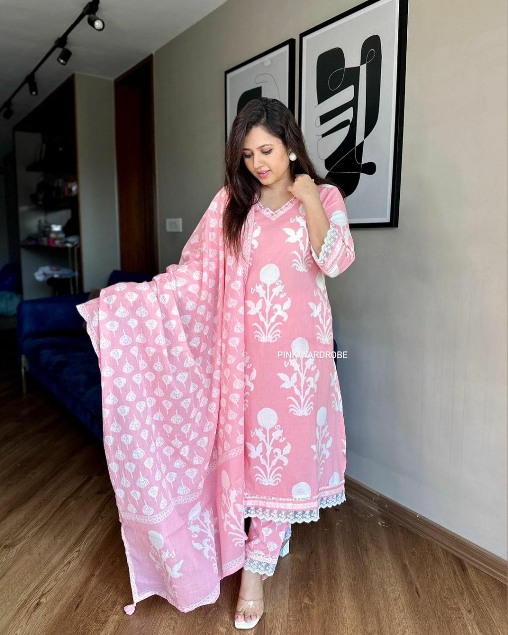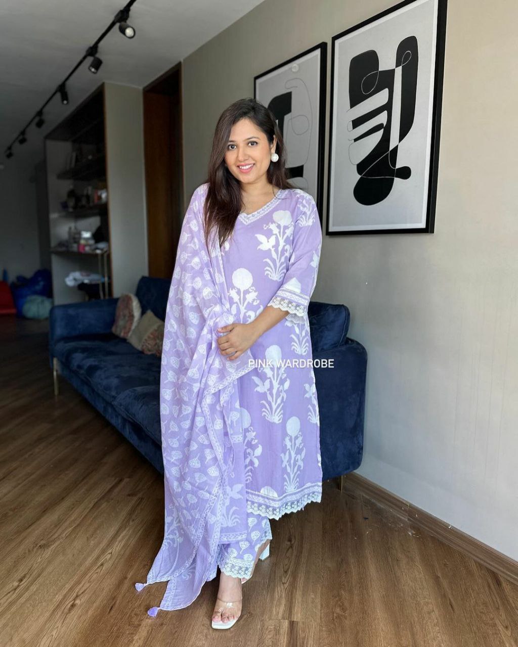 It is paired with kurta matching pants and Cotton dye dupatta For all the stylish ladies out there, who want something simple, sophisticated and traditional.