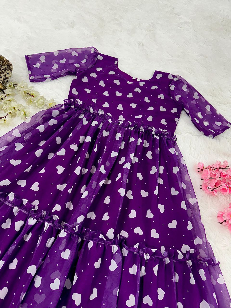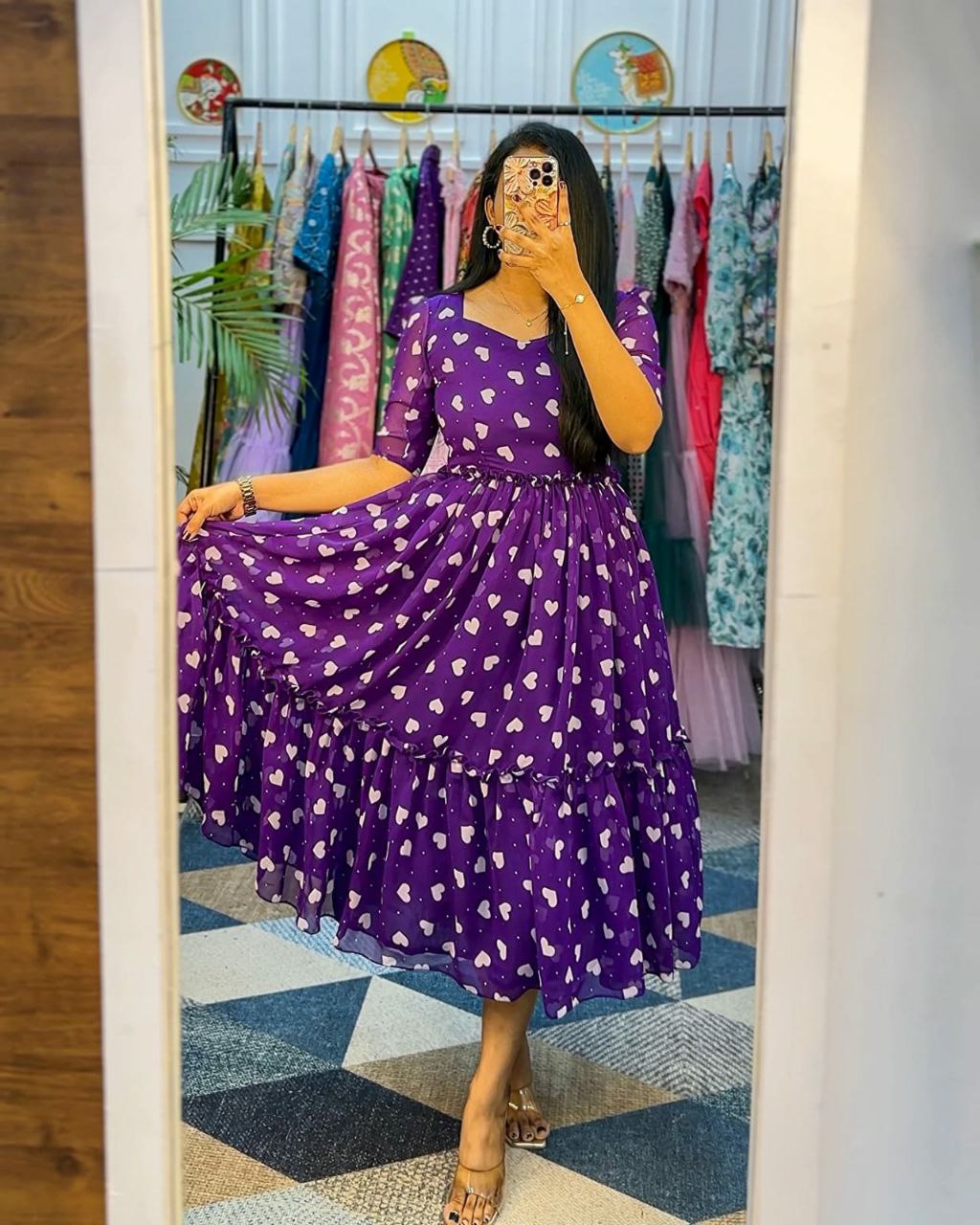 Top Fabric -This Frock features soft Georgette and full lining and attractive Heart print