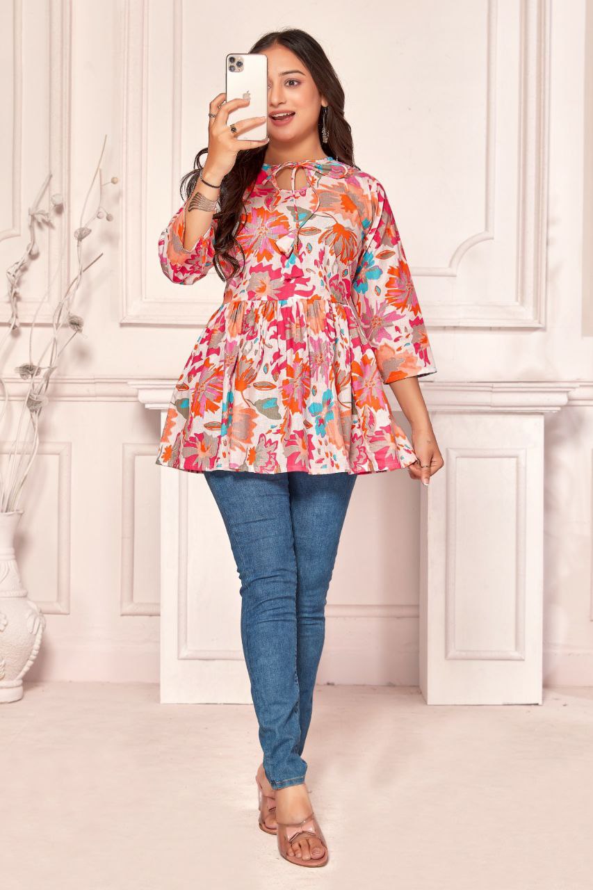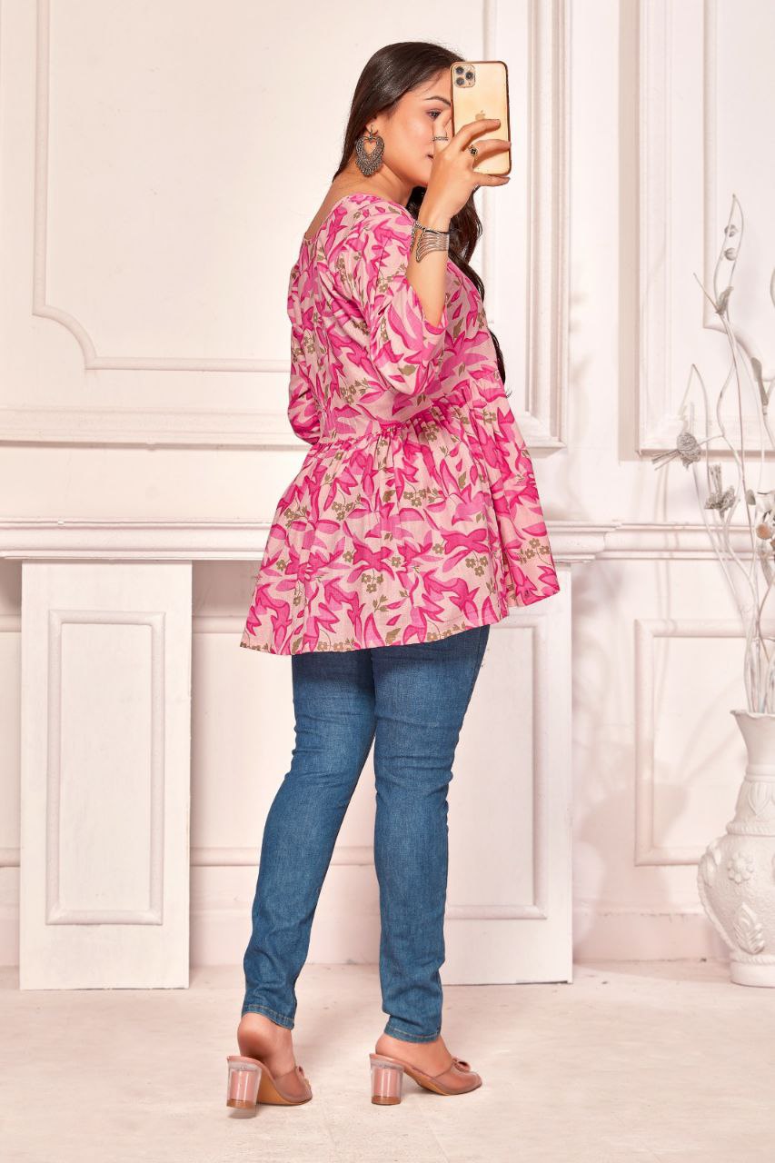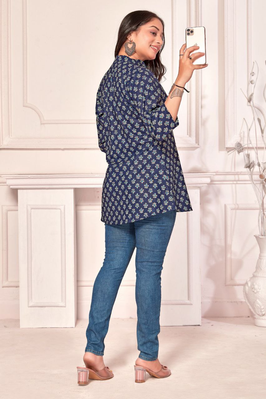 Beautiful Heavy Jaipuri Printed Cotton Fabric Tunic Top