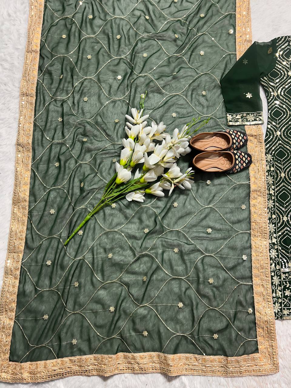 Dupatta Fabric: Heavy Faux Georgette with Heavy Embroidery, 5 mm Sequin Work, and Lace Border
