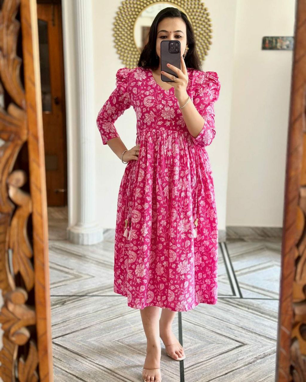 HEVAY PURE COTTON 60 60 WITH MILL PRINT PURE COTTON / AND FULL SLEEVE WITH ELASTIC PUFF PETTERN