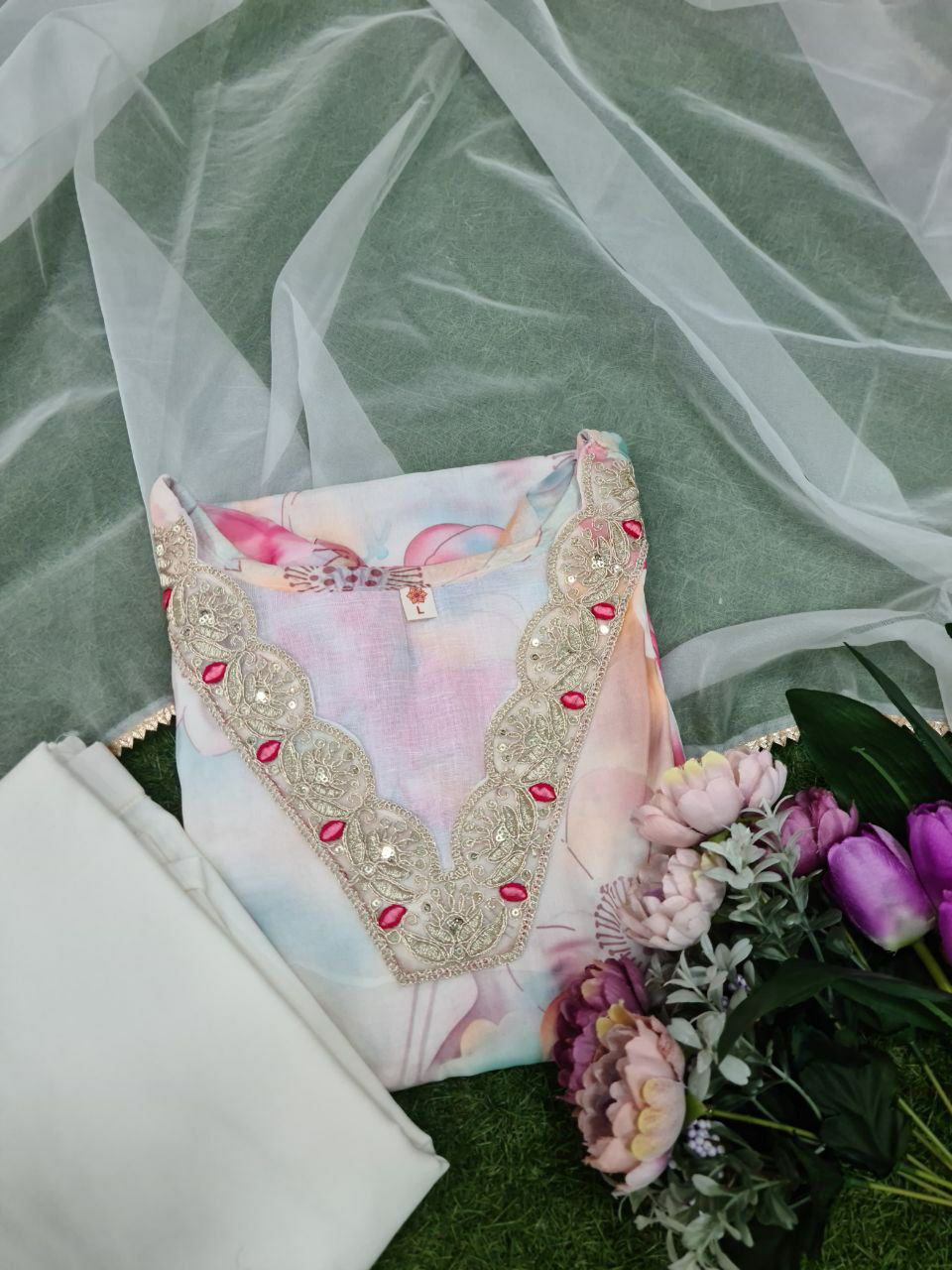 TOP FABRIC : PURE ORGANZA WITH SEQUENCE CODING EMBROIDERY WORK