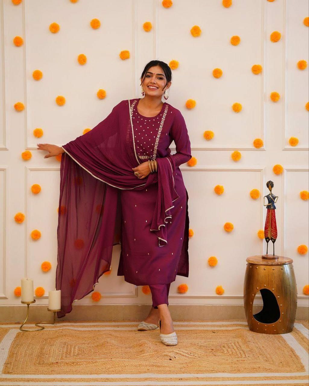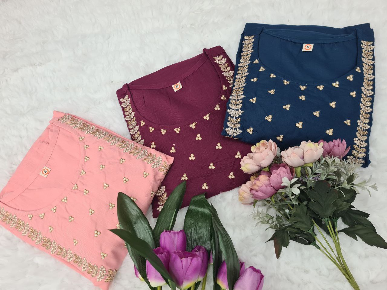TOP FABRIC : RAYON SLUB WITH SEQUENCE WORK
