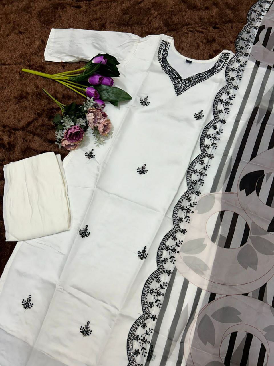 TOP FABRIC : ROMAN SILK WITH SEQUENCE EMBROIDERY WORK IN ALL OVER INNER